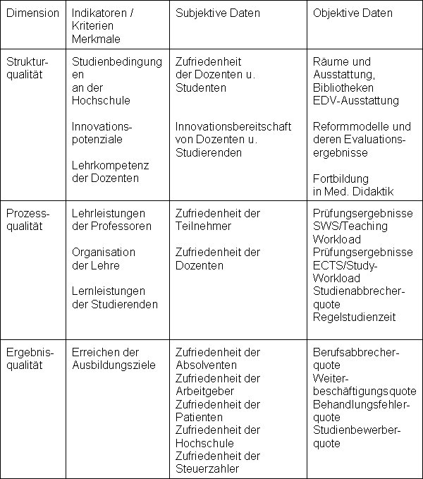 Tabelle 1: Qualität im Medizinstudium