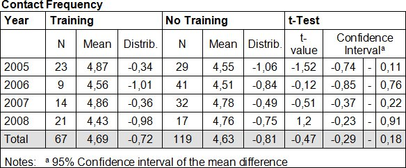 The descriptive hypothesis accordingly is: The training of mentors increased their contact frequency with the students they supervise.