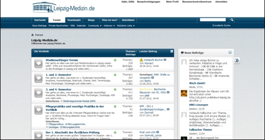 Figure 5: The forum of the portal Leipzig-Medizin.de subdivided into the individual degree programme sections (http://www.leipzig-medizin.de/forum)