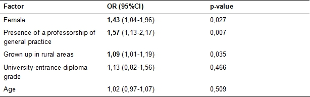 Methods: Medical students were surveyed with a standardised questionnaire about their attitudes towards general practice and their motivation to work as a GP in different working conditions. Predictors for positive attitudes and motivation were calculated using logistic regression models.