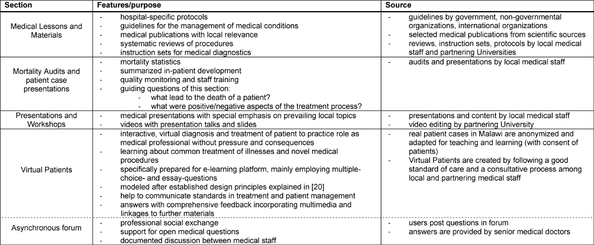 Table 1: Overview of sections of e-learning platform.