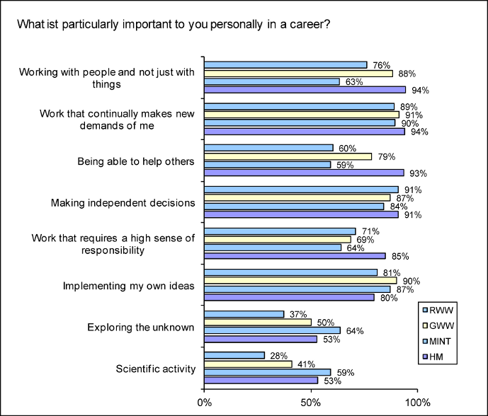 Figure 2: Selected responses to the question “What is particularly important to you personally in a career?” (Proportion of scores 4-6 on a scale going from 0= “totally unimportant” to 6= “very important”)