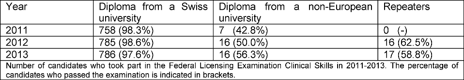 Table 1: Number of candidates and pass rate for the Federal Licensing Examination Clinical Skills 2011-2013
