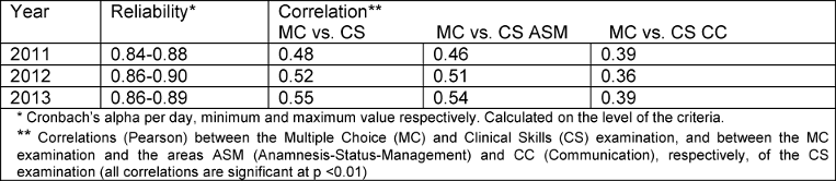 Table 2: Statistical quality indices of the Federal Licensing Examination Clinical Skills 2011-2013