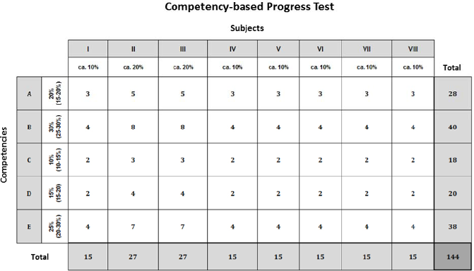 Table 1: Blueprint of the formative competency-based progress test: subject group and competency area clusters.