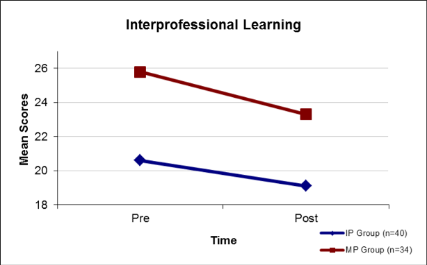 However, when change in attitude between groups was compared, this was not significantly different, meaning potential influences of the interprofessional factor were not revealed using this quantitative measure.