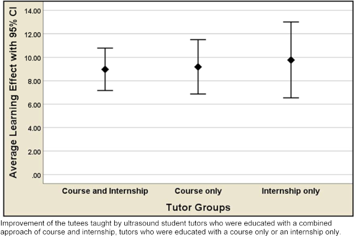 Conclusion: Student tutors, who were trained with a course or an internship or a course and an internship could teach scanning skills to 5th year medical students very effectively and with similar success.