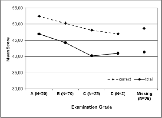 - The grade achieved in the licensing exam. The results of the study show a moderate correlation between a good final grade and a good result in the knowledge test. The exam grade showed the greatest effect of the used socio-demographic variables on performance in ANCOVA.