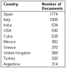 Table 2: Top 10 contributing countries to E-LIS (data retrieved on April 14, 2009)
