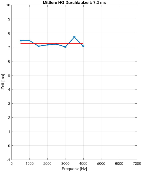 Abbildung 5: Graphische Darstellung der errechneten HG-Durchlaufzeit für das Phonak Una M sowie des Mittelwerts nach Abschluss der Messung im Titel der Abbildung