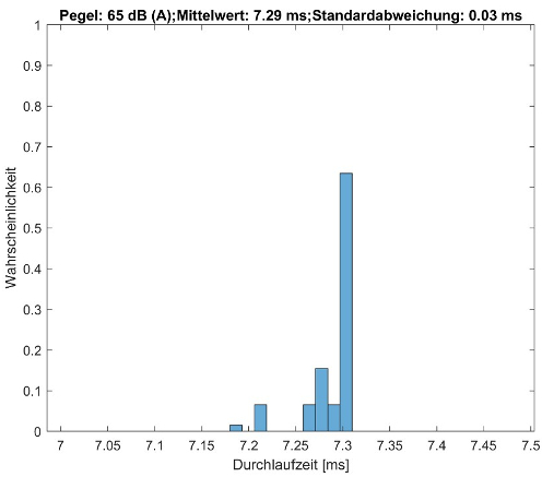 Um den Arbeitsbereich des Messaufbaus zu spezifizieren, wurden für Pegel zwischen 45 dB (A) und 75 dB (A) jeweils 200 Messdurchläufe durchgeführt.