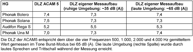 Tabelle 1: DLZ der ACAM 5 – Messbox im Vergleich mit dem eigenen Messaufbau