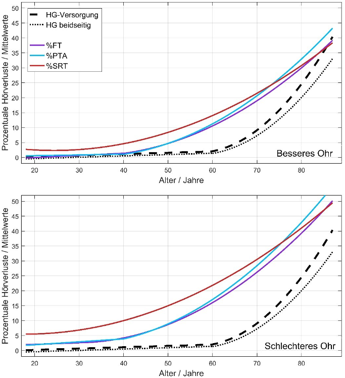 Altersabhängigkeit des prozentualen Hörverlustes
