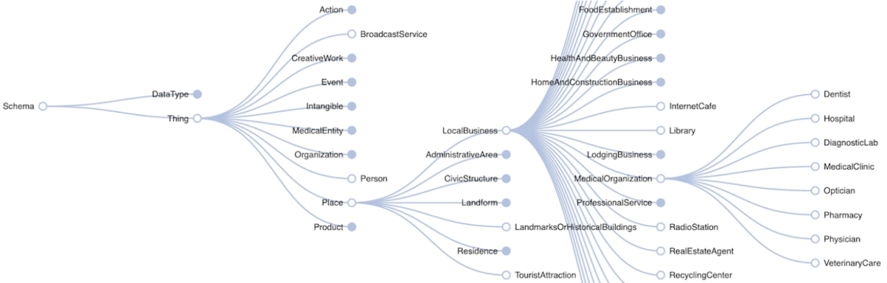 Abbildung 2: Ausschnitt des Schema.org-Pfades zur ‚Library’-Definition und den medizinischen Einrichtungen